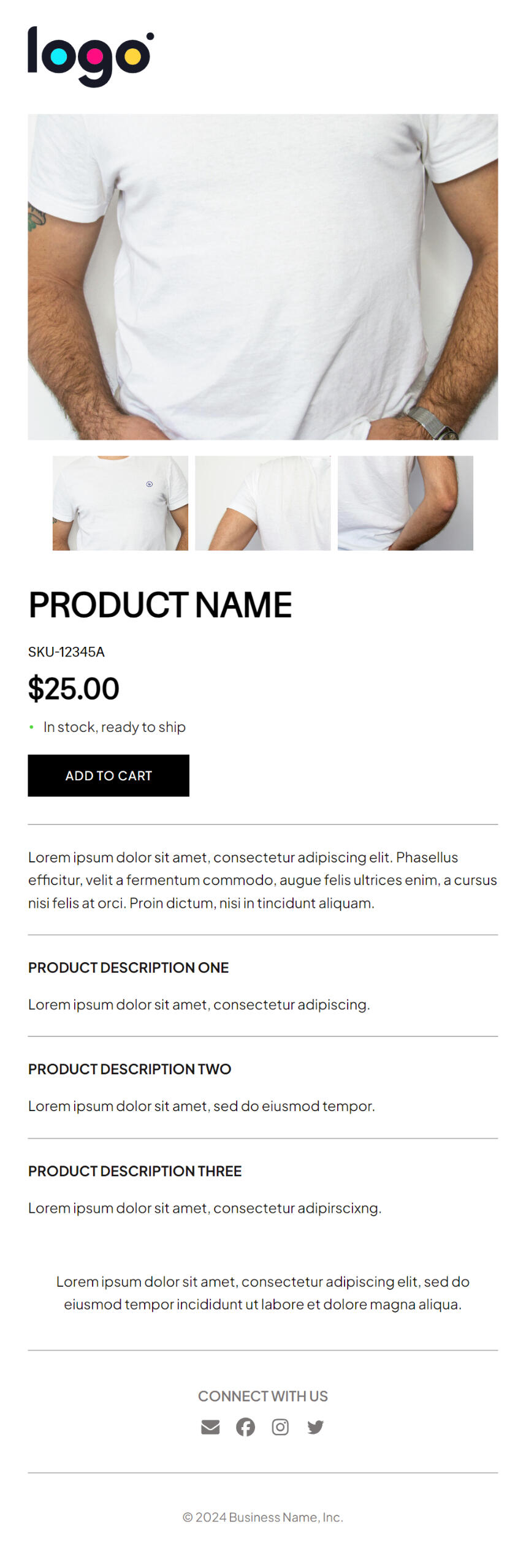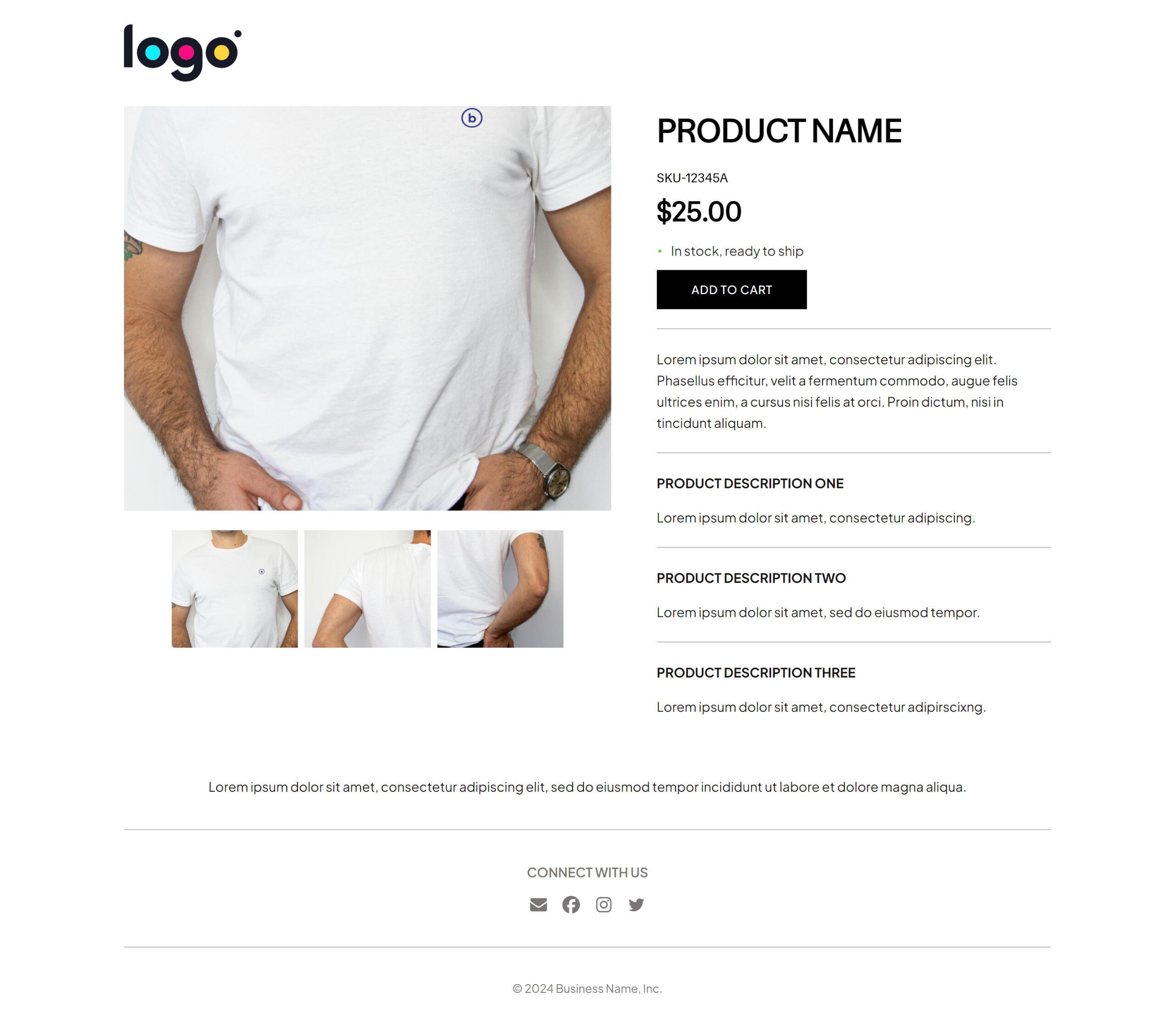 A Single Item Physical Product Page template for Carrd.co highlights a featured product with large, easily visible images, detailed descriptions, and product details. Users can easily update images and copy. This high-converting layout is designed to work perfectly for showcasing individual items and driving action.